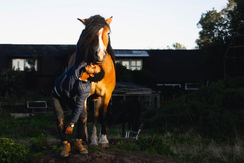 Dansare Mohammed Y. Shika från Cullberg i ”the trust workshop” med nordsvenska stoet Tingeling.