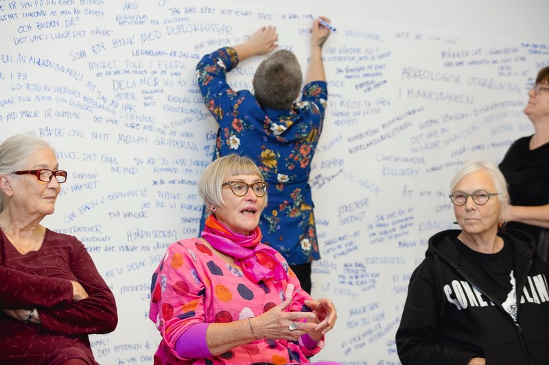 Från nätverksträffarna i projektet Kvinnlig kulturbaserad historieskrivning i norr, som Galleri Syster drev 2019–2020. Foto: Viveka Österman.