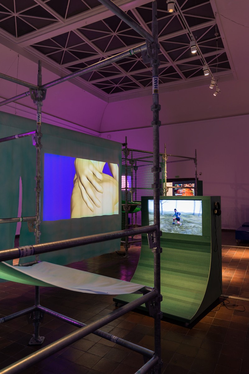 Mest meningsfullt och konstnärligt lyckat under denna första del är Militza Monteverdes videoverk Forest Fantasy (2016), som låter oss följa hennes avatar genom ett inre och yttre landskap som lånat både form och innehåll från datorspelet. Just kontrasten mellan en form som vi är vana att betrakta som icke-äkta, den rena underhållningen som ersätter den köttsliga världen där någonting verkligt står på spel, och de existentiella gap som videons textspår sliter upp, får faktiskt någonting att hända – inte minst då avataren på knä plötsligt kämpar mot någonting mycket större än datorspelets sedvanliga motståndarfigurer, eller reflekterar över sin egen uppenbarelse som just avatar. Drick fem liter vatten och dö med perfekt hy. Det är roligt att reptilhjärnan kopplar förlust av balansförmågan till en snar undergång. Hur rör sig hästsvansen när jag springer? Om du vill få den att kännas mer följsam kan du alltid sätta in en liten ryggrad. Resultatet blir en abstrakt orienteringsövning i den ovissa framtidssamtid som utställningen i stort försöker teckna konturerna av.