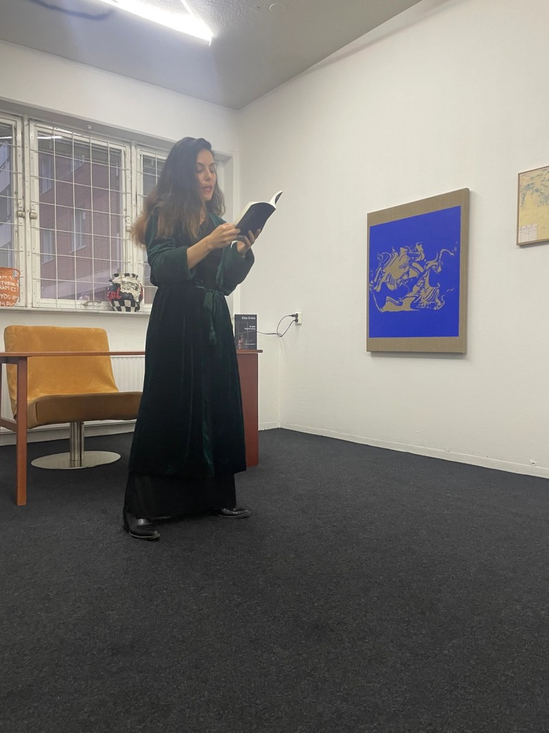 Redaktör Patrik Haggren presenterar numret och palettens Laleh Kazemi Veisari läser ur hennes och Andria Nyberg Forshages text "Handling är drömmens syster", en fragmenterad redogörelse för Venedigbiennalen The Milk of Dreams (2022).